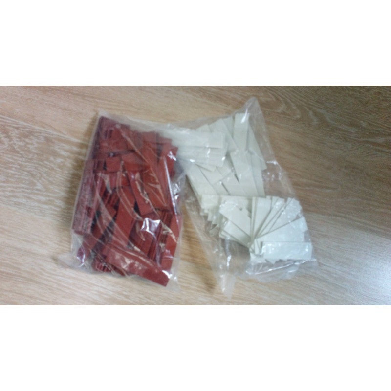 Cales d'ajustement pour la mise à niveau des lambourdes. Dimensions: 22x100 mm, hauteur variable de 1 à 5 mm. Résistance à la charge: 300 kg maximum. Sac de 100 cales