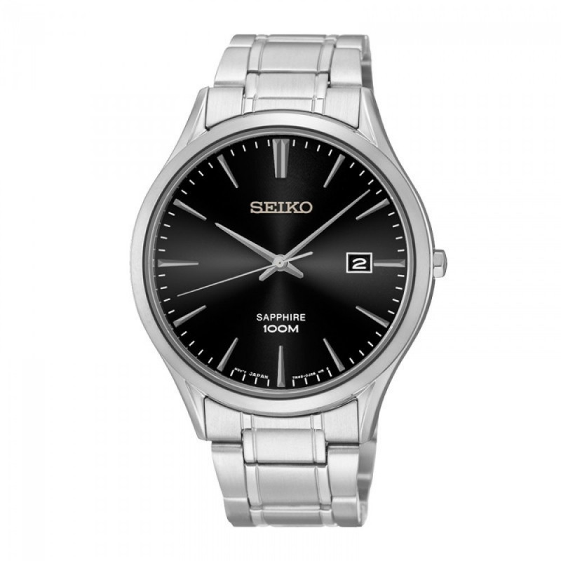 Montre Seiko homme : Garantie : 2 ans Bracelet : acier déployant Verre : Saphir Cadran : noir + date + index acier Fond : vissé Étanchéité : 100m Ouverture de boite : 40mm