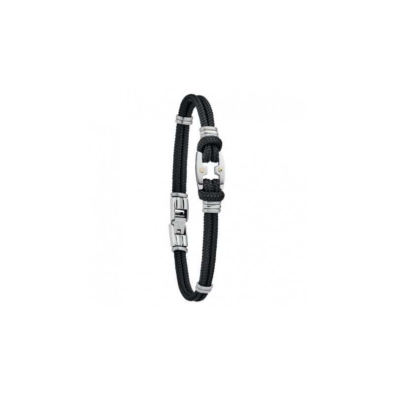 ce bracelet de la marque Jourdan est en cordon noir acier et or 750/000